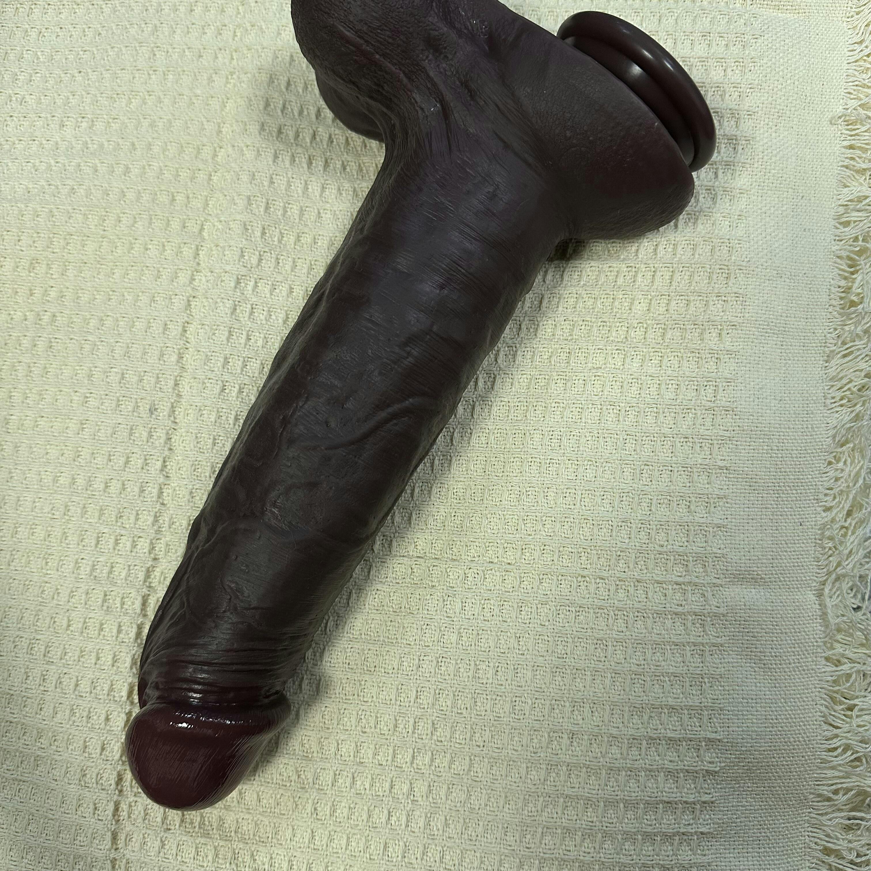 This 11-inch realistic dildo boasts a 7-inch circumference and 2.2-inch diameter .